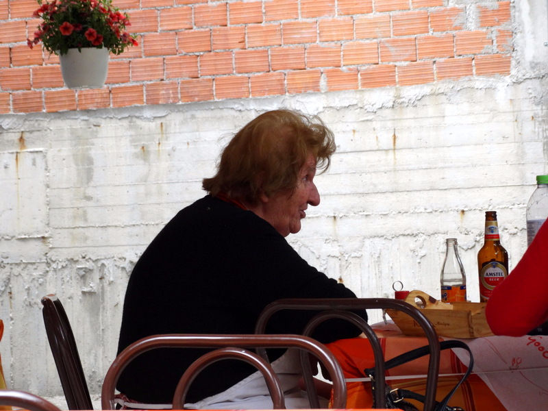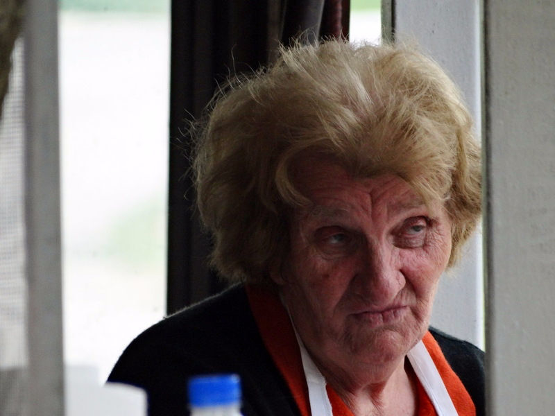 А закончили мы убегания от дождика в первой же попавшейся нам на пути придорожной таверне. И ничего вроде бы не предвещало неожиданностей, таверна как таверна, шашлык как шашлык, но поразила меня хозяйка этого заведения. Держит она со своей семьей — мужем, детьми и внуками — это заведение 53 года!!! Всё делают сами, а бабке доверили самое главное — рассчитывать клиентов. Потрясающая картинка, как хозяйка присаживается за стол к клиентам, пишет в блокнотике цифры цен на съеденное, считает в столбик и вытаскивает толстый кошелек, куда складывает денежку. Ну, прям, бандерша, экзотика, блин! Попытался сделать несколько снимков, но очень неудобно было делать это в упор…