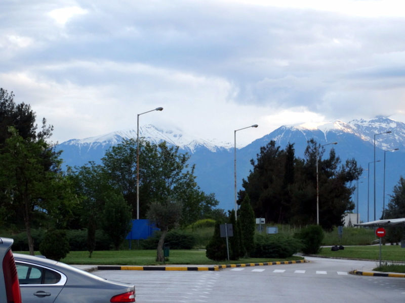 И напоследок, наконец, уже к вечеру, возвращаясь в Салоники, облачка чуток расползлись и открыли снежные шапки горы Олимп или Олимпус по-местному. Вот как в сумерки это выглядит с заправки по дороге.